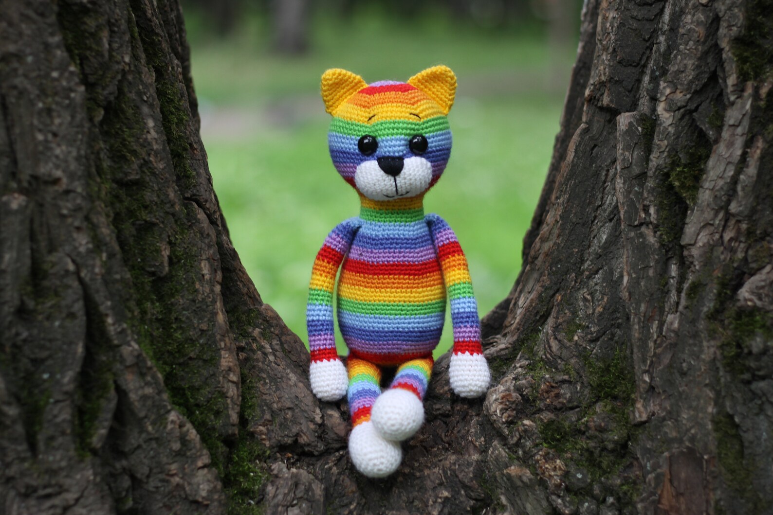 Меня вдохновила нейросеть! Вязанный радужный кот крючком// описание вязания