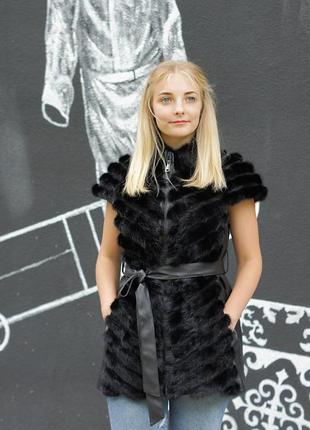 Жилетка из хвостиков норки, длина 80 см