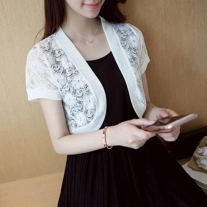 Экспериментируйте с различными стилями одежды, от повседневного до вечернего, добавляя кардиган с кружевными рукавами в свой образ.