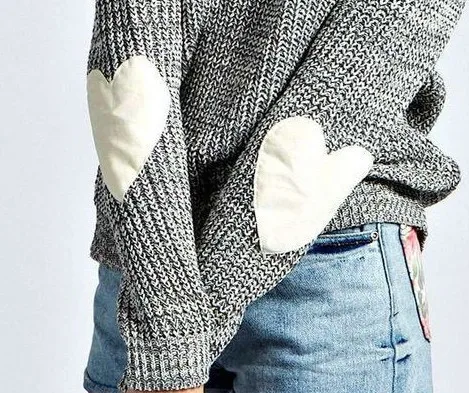 Идеи для создания образа с кофтой, украшенной милыми сердцами на локтях