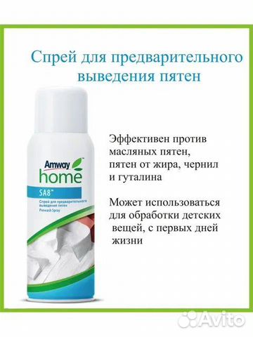 Использование спрея для предварительного выведения пятен SA8 компании AMWAY.
