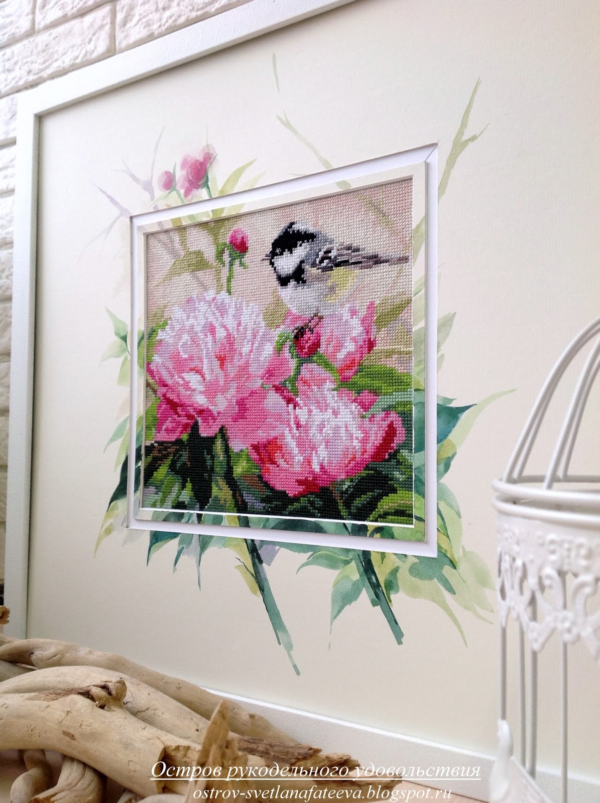 Синичка и пионы #алиса #пионы #вышивка_крестом #вышивка #вышивка_крестом #текущиепроцессы
