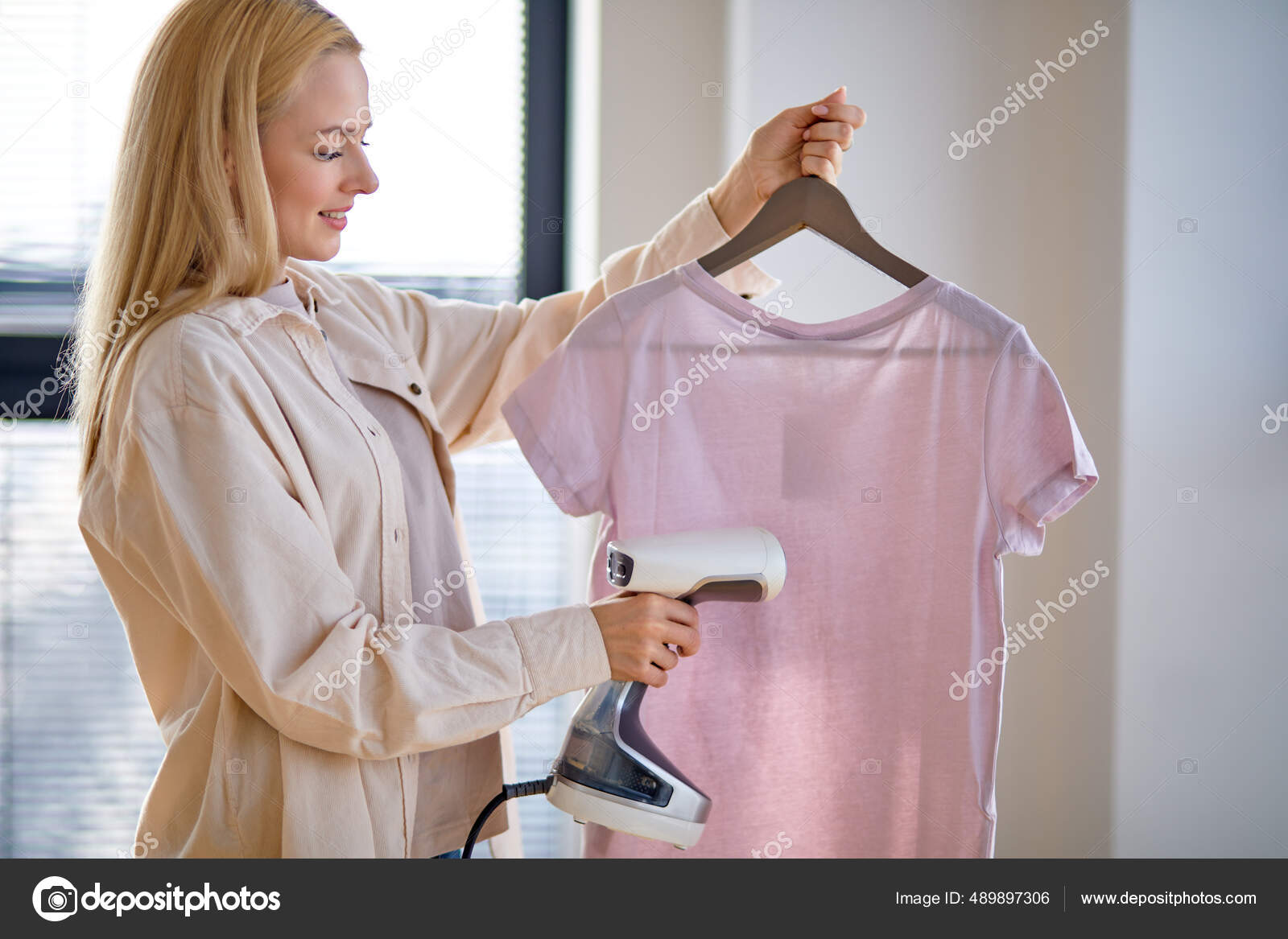 Используйте фен для волос на холодном режиме, направляя воздух на рубашку для разглаживания ткани.