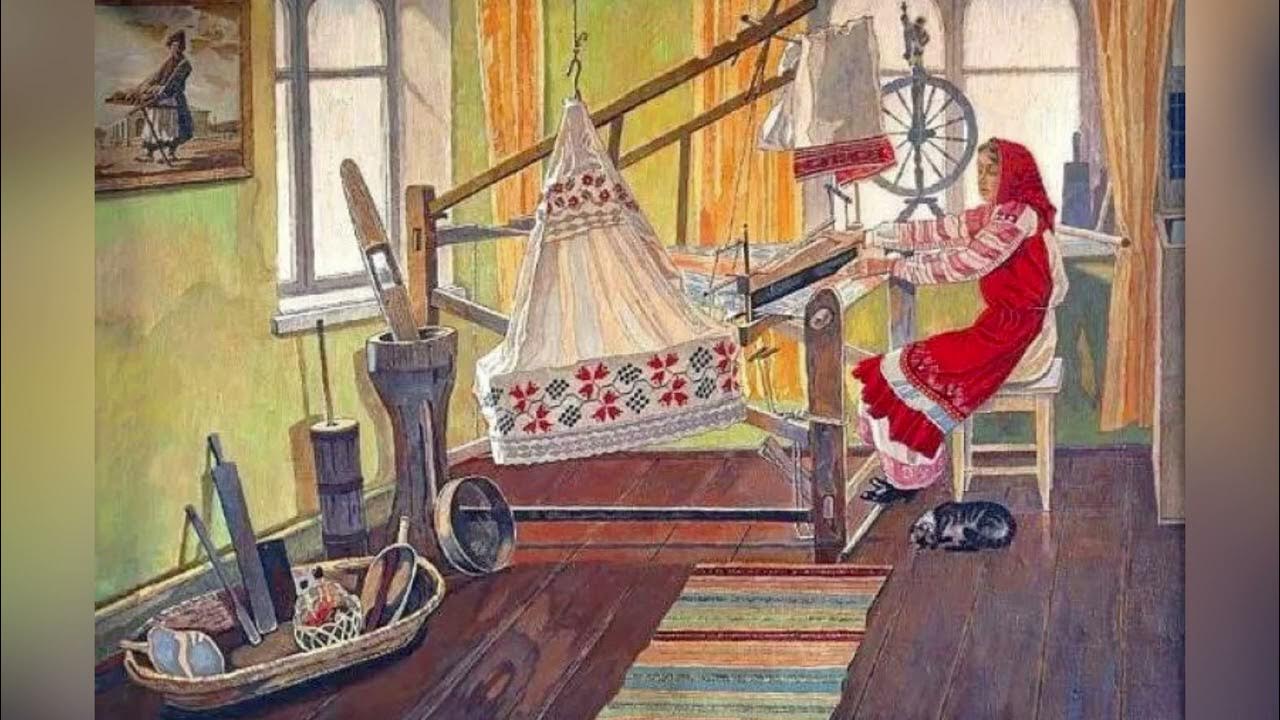 Как работает старинная русская прялка с колесом