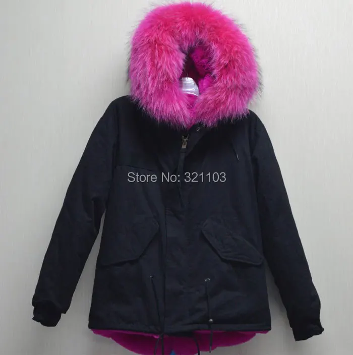 Куртка парка чёрная с розовым мехом
