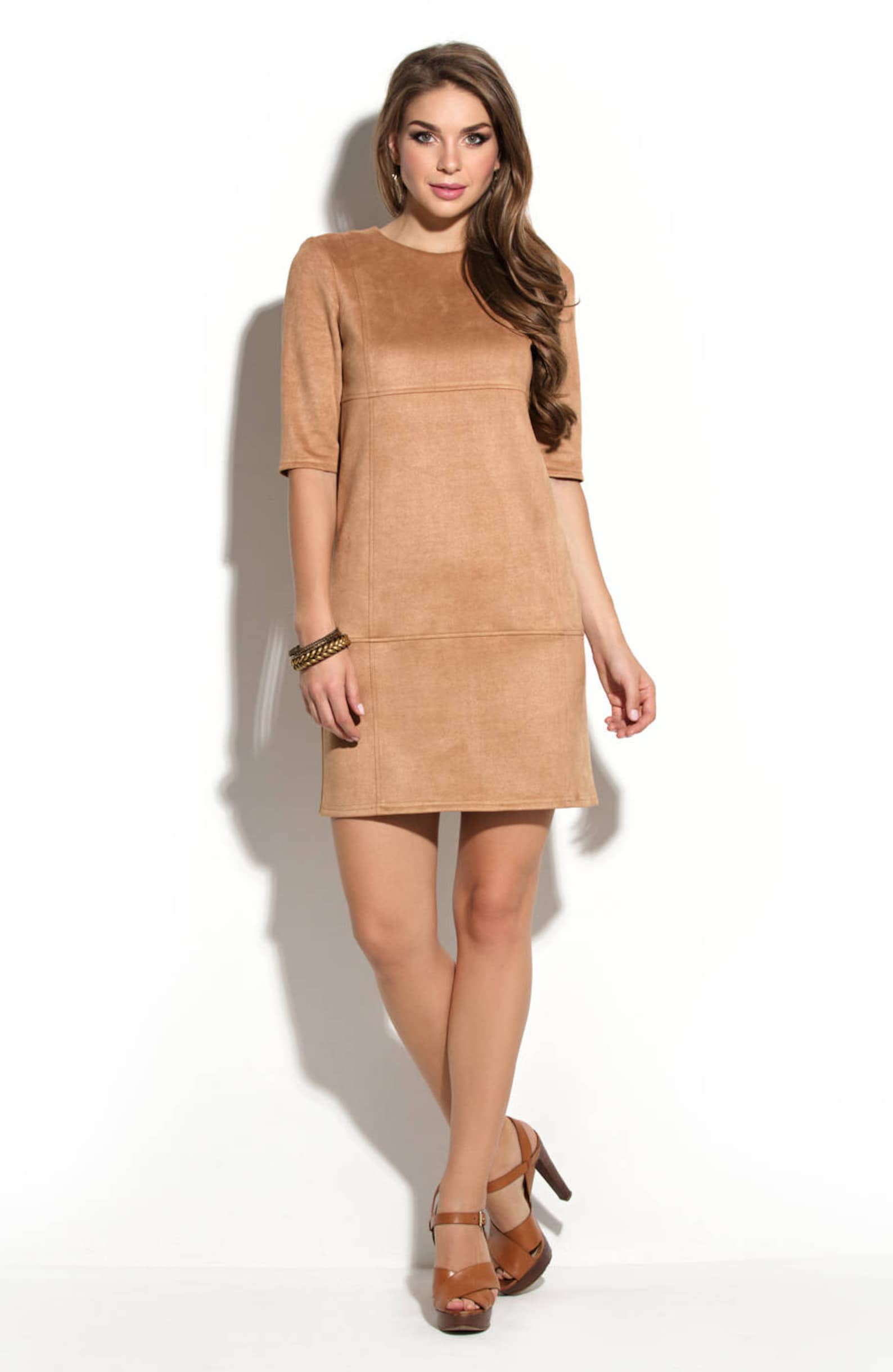 Учитывайте особенности вашего телосложения при выборе длины, фасона и цвета платья из искусственной замши.