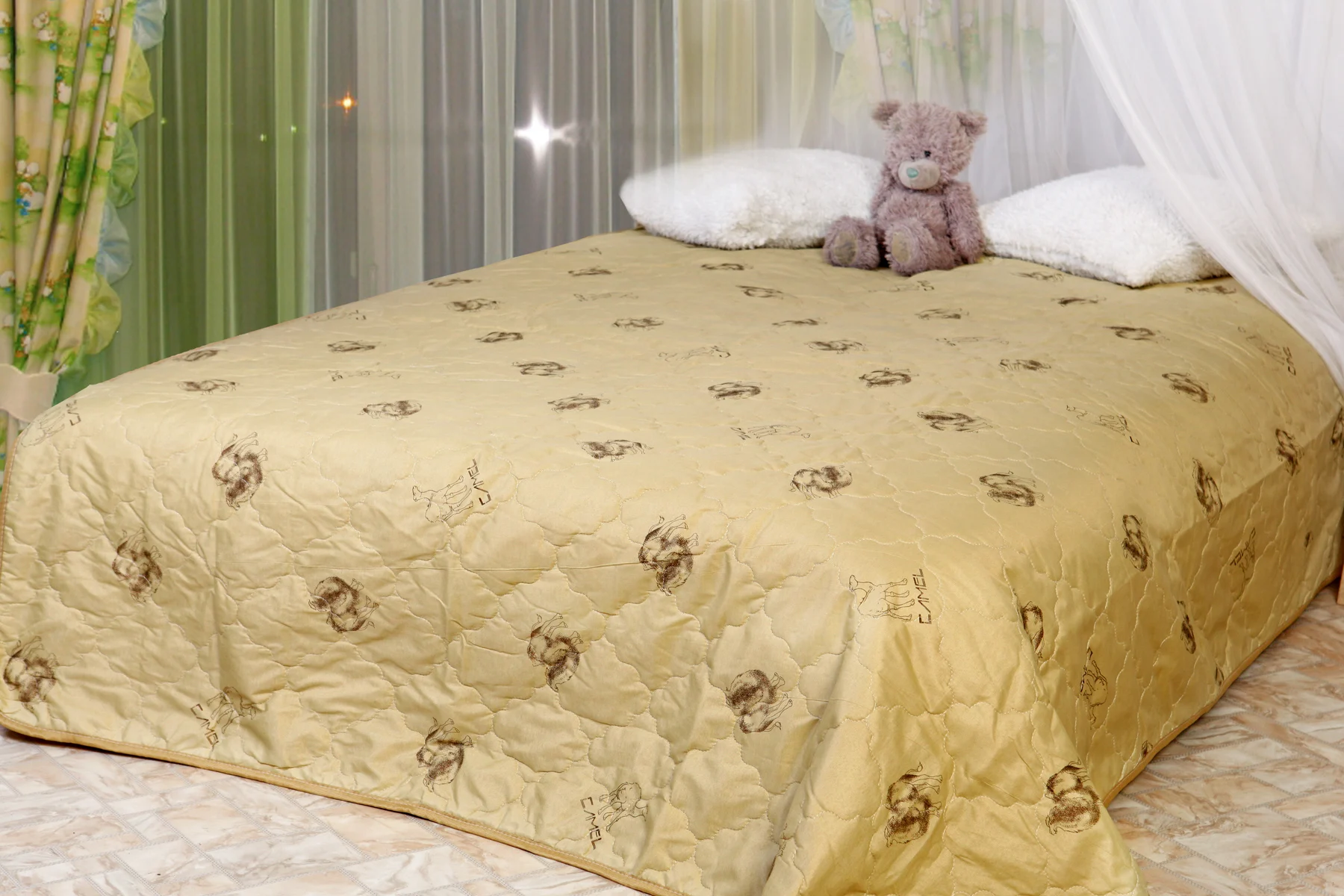 Для сохранения формы покрывала из верблюжьей шерсти регулярно его расправляйте и стряхивайте от пыли.