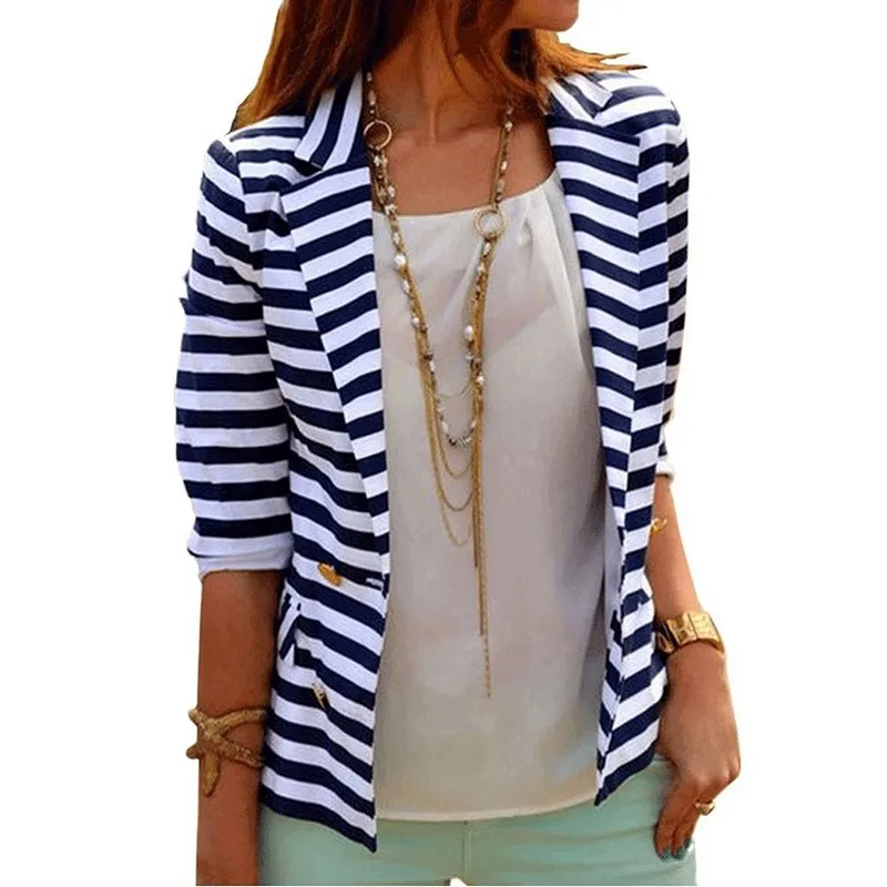 Попробуйте комбинировать полосатый пиджак с юбкой или платьем для женственного и стильного вида.