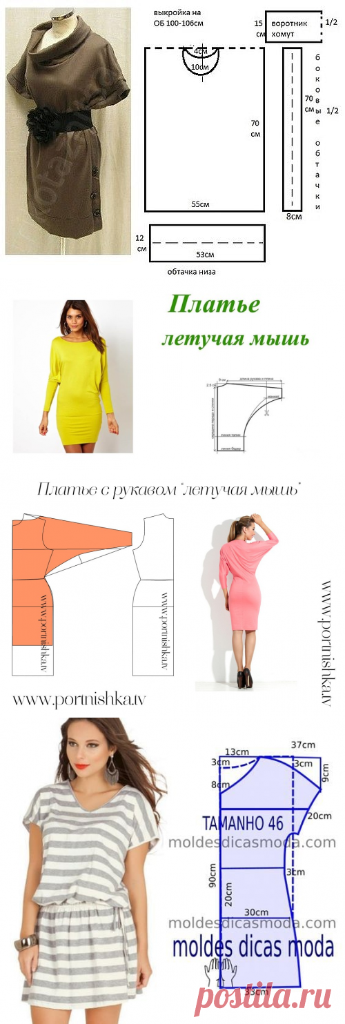 Платье с рукавом летучая мышь. Простой способ