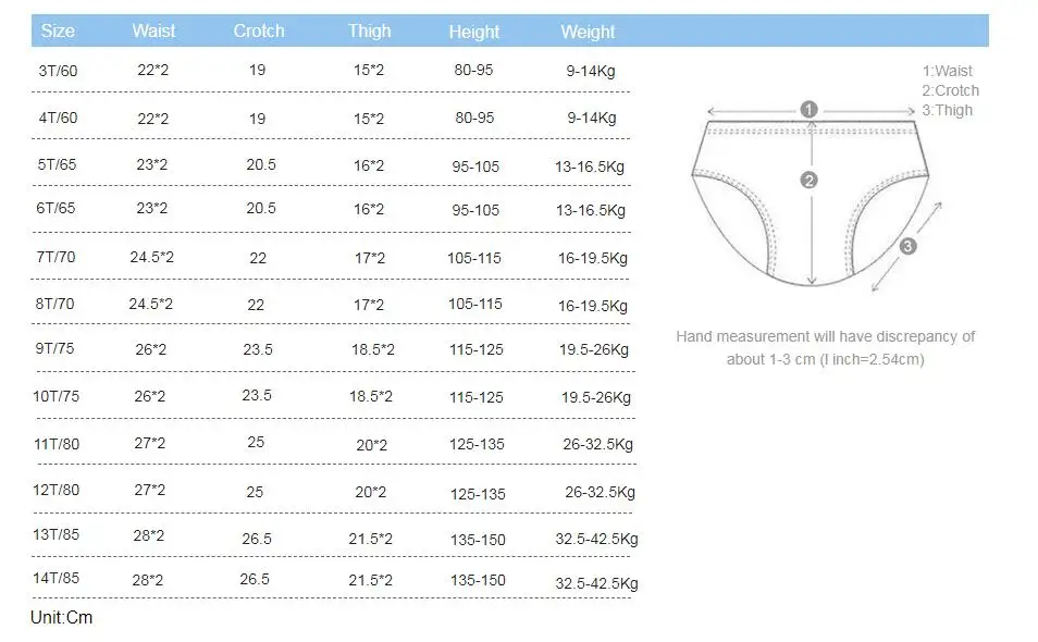 Перед покупкой трусов для девочек ознакомьтесь с рекомендациями производителя по подбору размеров.