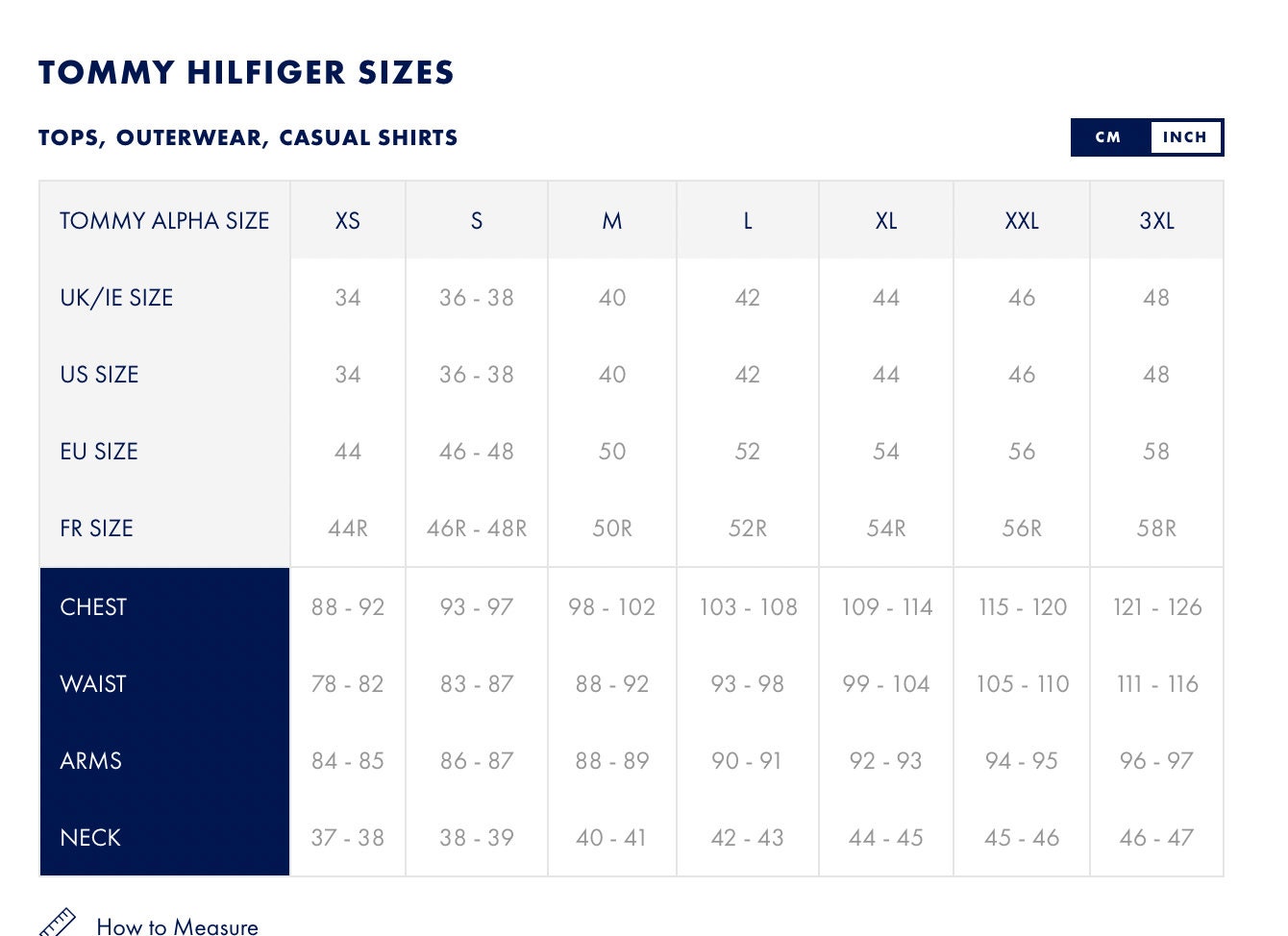 Будьте внимательны к росту, весу и типу фигуры при выборе размера Tommy Hilfiger.