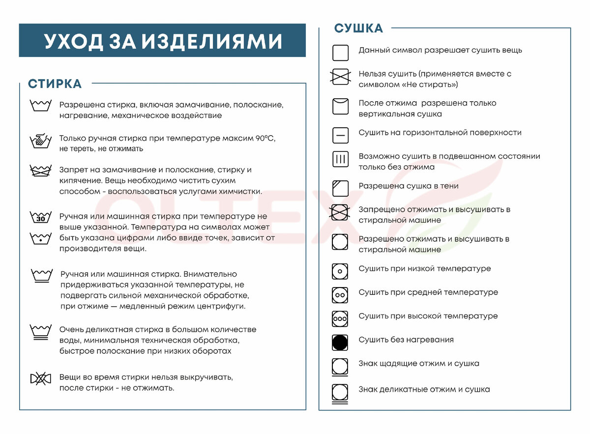 Следите за инструкцией на этикетке изделия, чтобы корректно ухаживать за ним и продлить его срок службы.