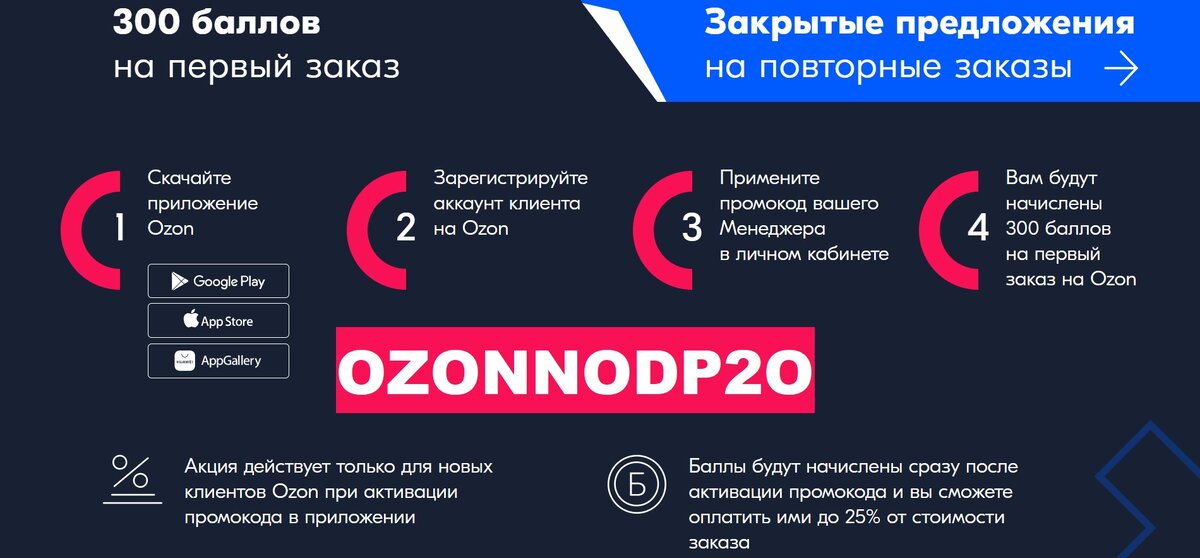 Эксклюзивный промокод для первого заказа: 300 баллов в подарок на OZON!