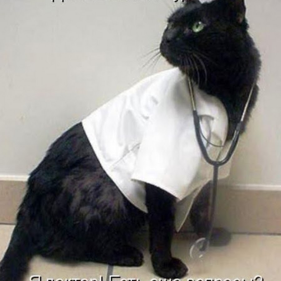 Помните о необходимости регулярных прогулок на свежем воздухе для кота даже в медицинском халате.