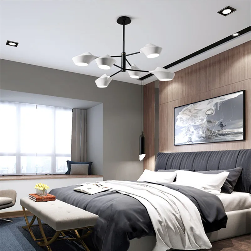 Используйте подвесные лампы для точечного освещения над кроватью.