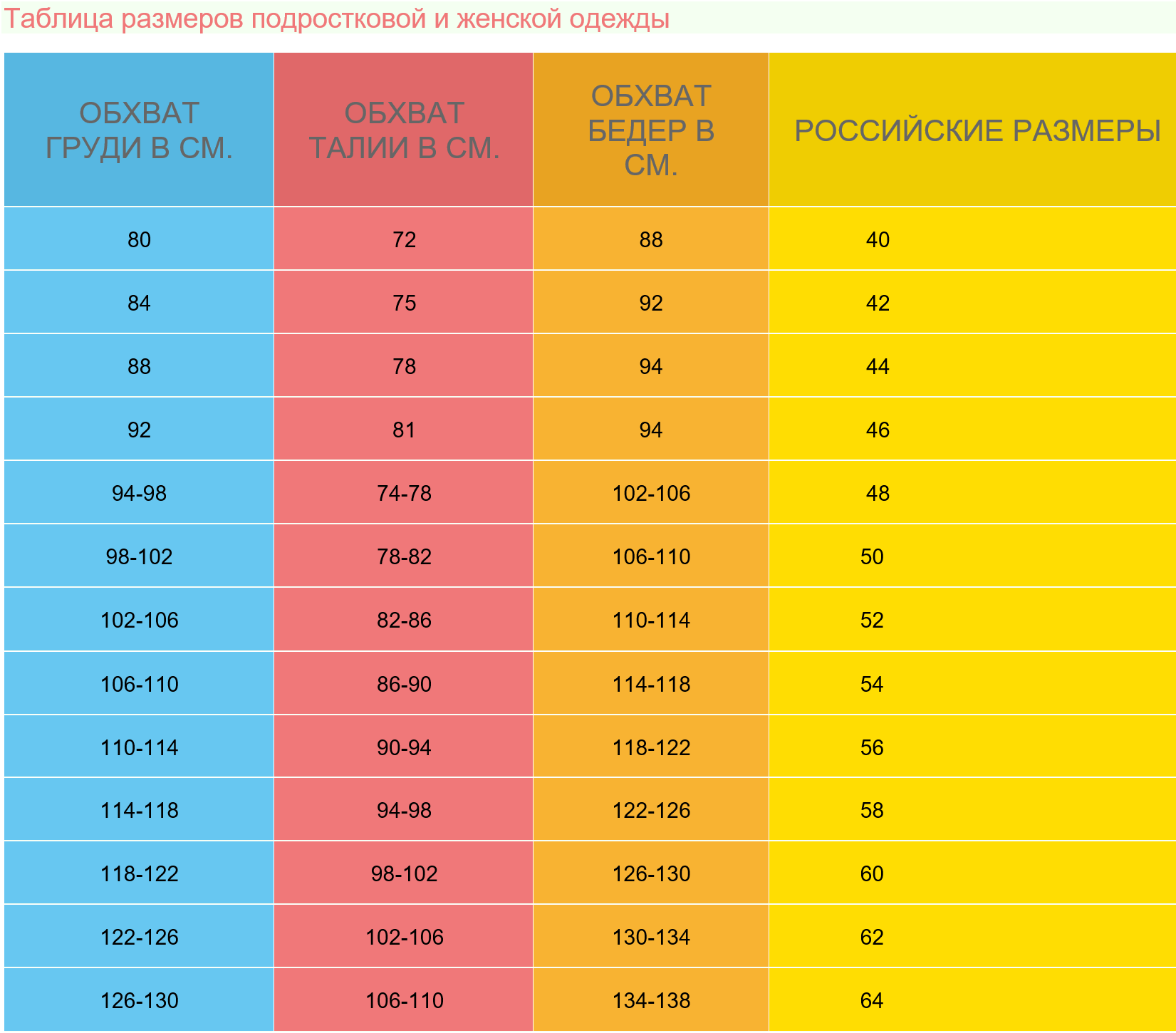 РАЗМЕРНАЯ ТАБЛИЦА ( еще одна, но другая)