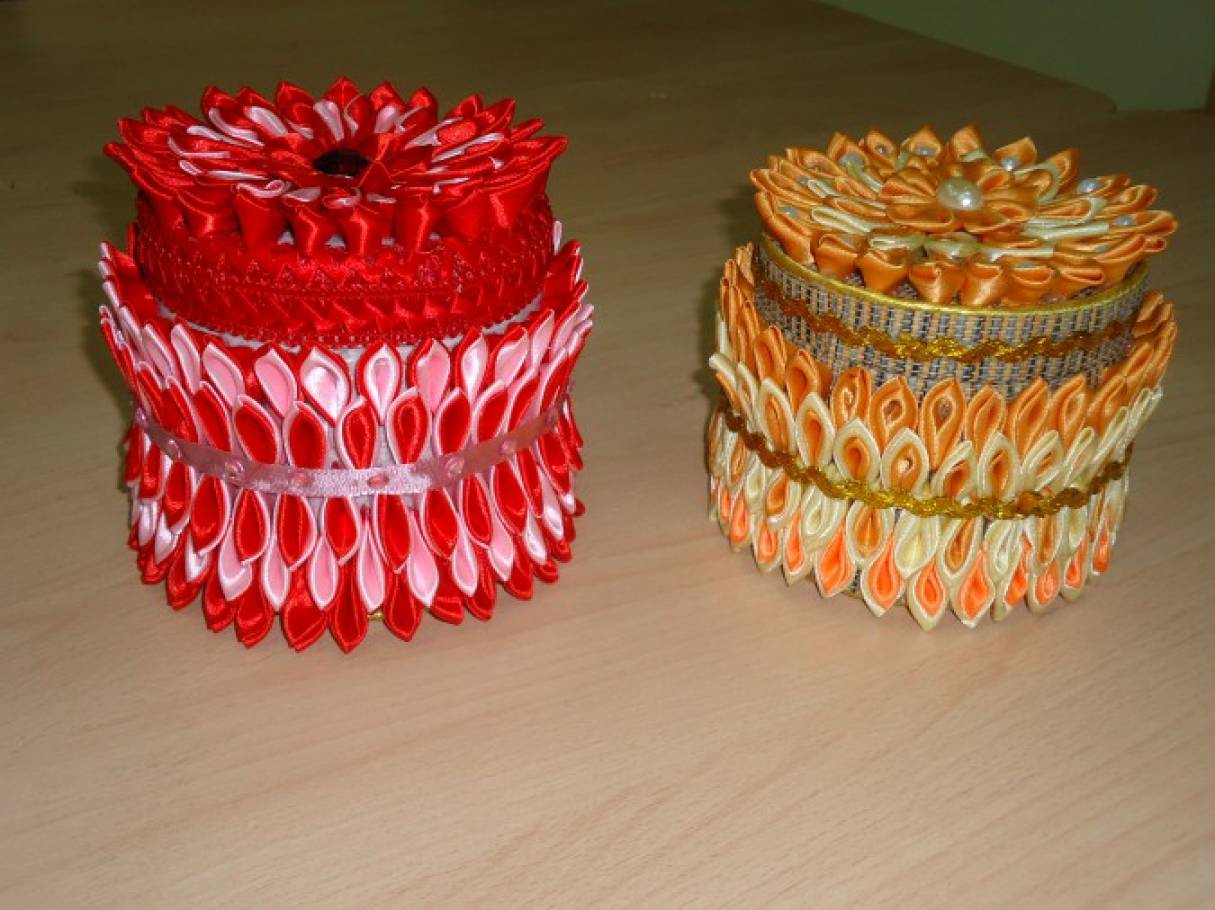 МК. Шкатулка в технике канзаши. Из атласных лент #шкатулка #шкатулкаканзаши