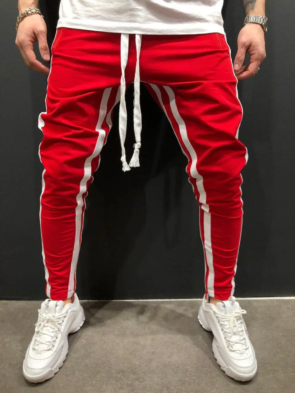 Как выбрать стильные мужские штаны с красной полосой на моде