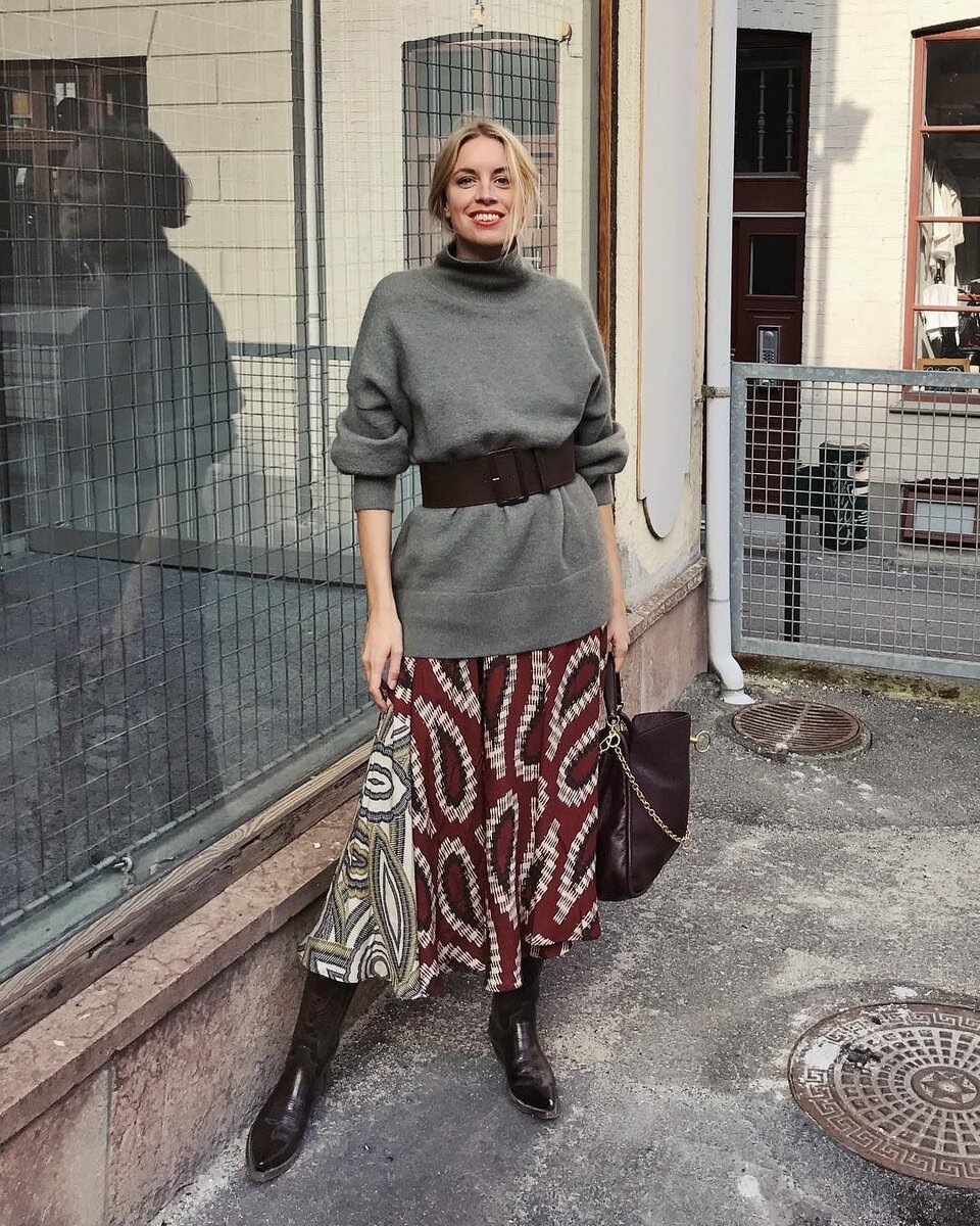 Играйте с текстурами и объемами: сочетайте объемные свитера с узкими брюками или юбками для баланса в образе.