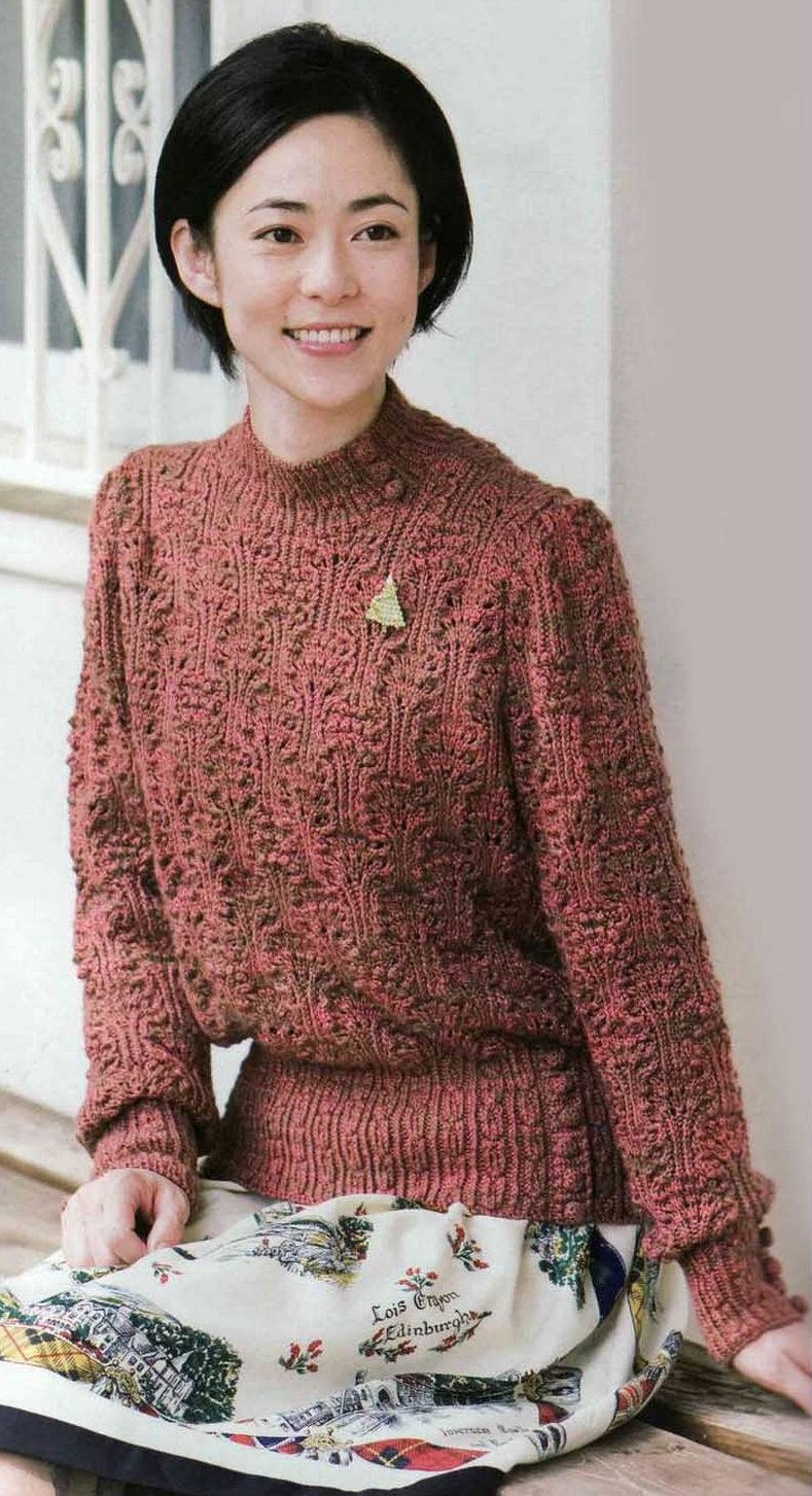 Изучите различные техники вязания, применяемые в японских моделях пуловеров, такие как аранский узор или синель.