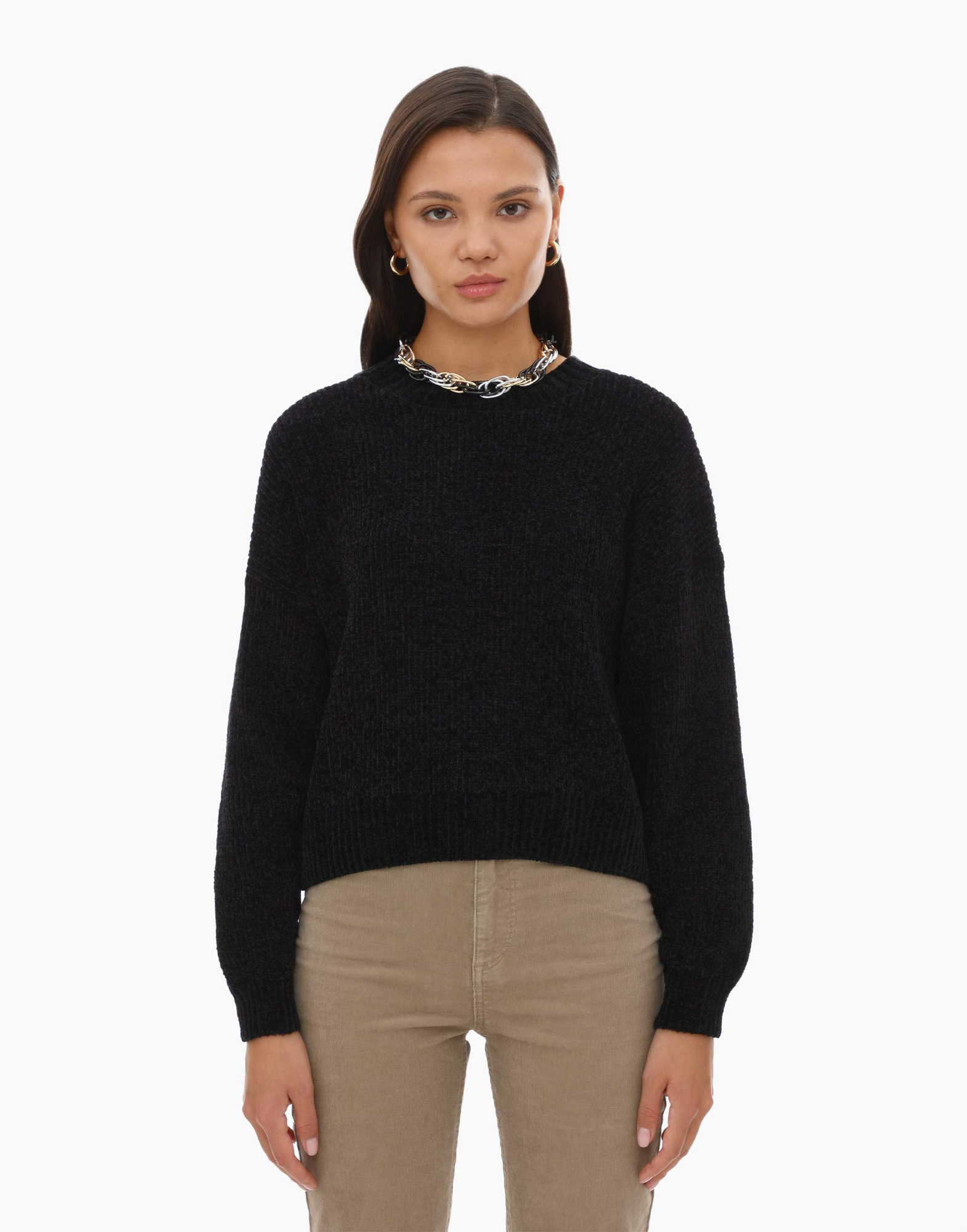 Выбирайте правильный размер: джемпер должен быть достаточно свободным, но не слишком объемным, чтобы не потерять пропорции фигуры.