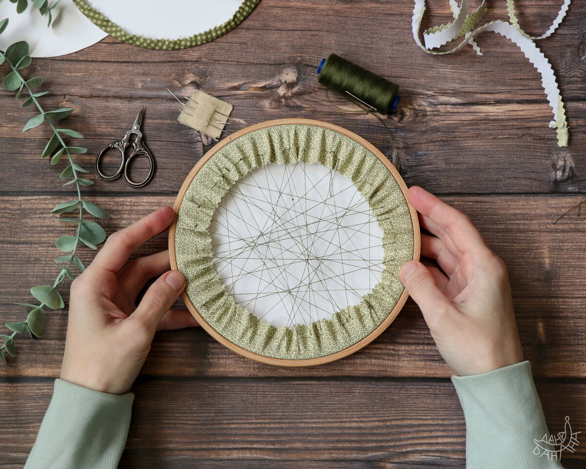 Перед началом работы тщательно подготовьте ткань и пяльце, чтобы избежать нежелательных складок и морщин на вышивке.