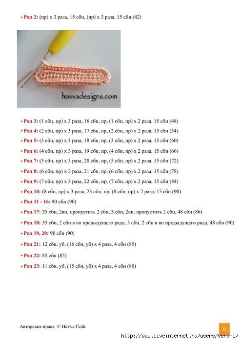 Используйте схему и подробное описание для каждого этапа вязания пчелки.