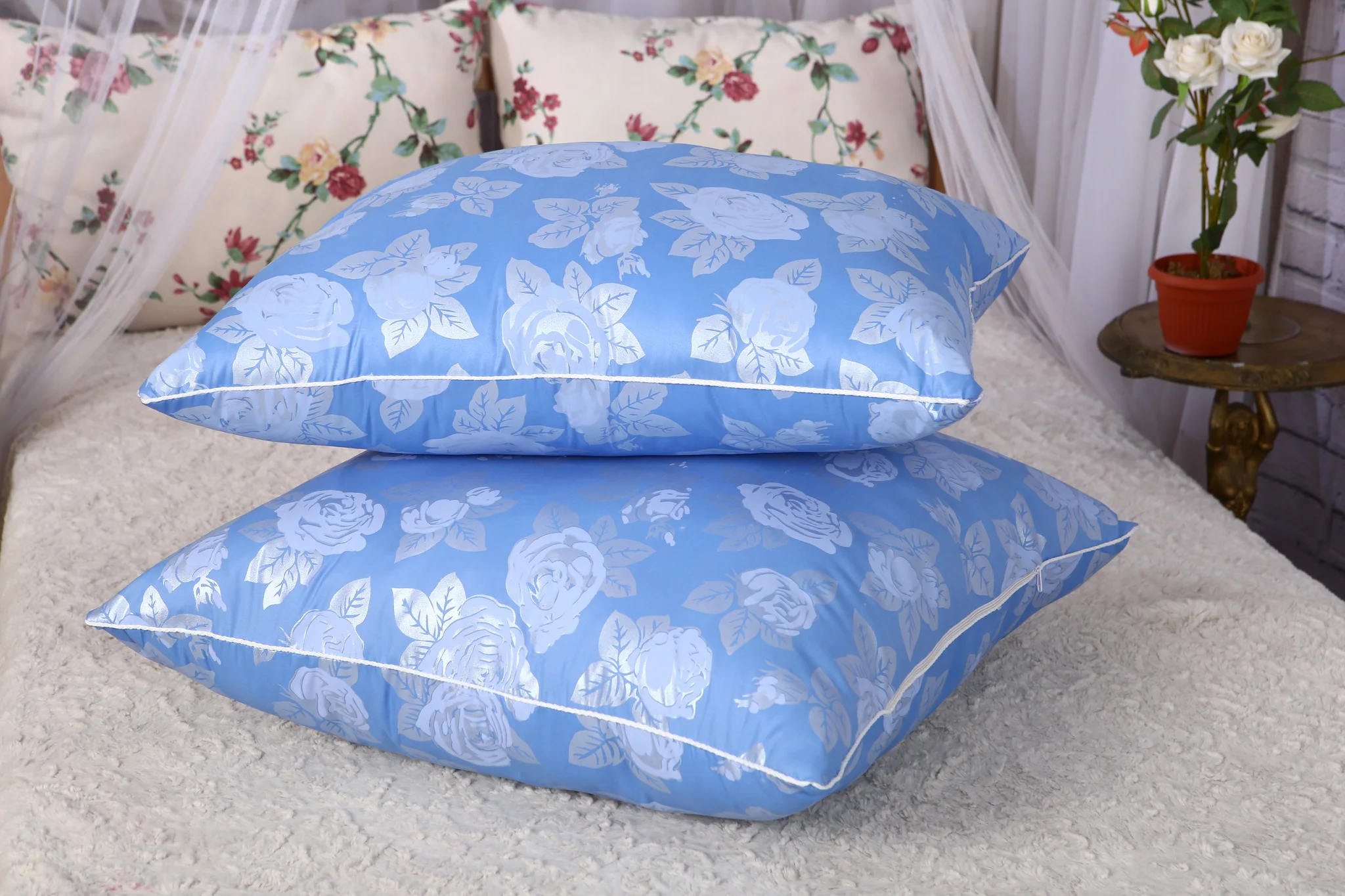 Периодически проветривайте подушку на лебяжьем пуху, чтобы избежать скопления пыли и насекомых.