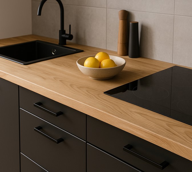 Доступные по цене материалы, которые позволяют сделать кухню стильной при небольшом бюджете. Главное — следить за качеством покрытия, чтобы защитить столешницу от влаги и сколов.
