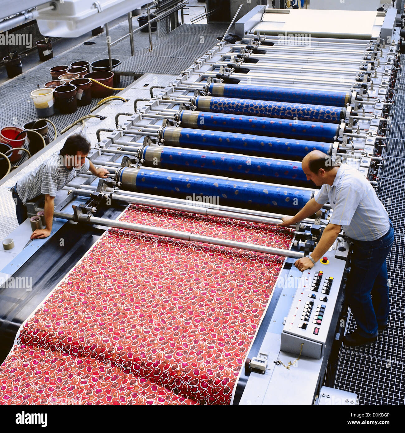 Процесс окраски тканей на фабрике по производству тканей