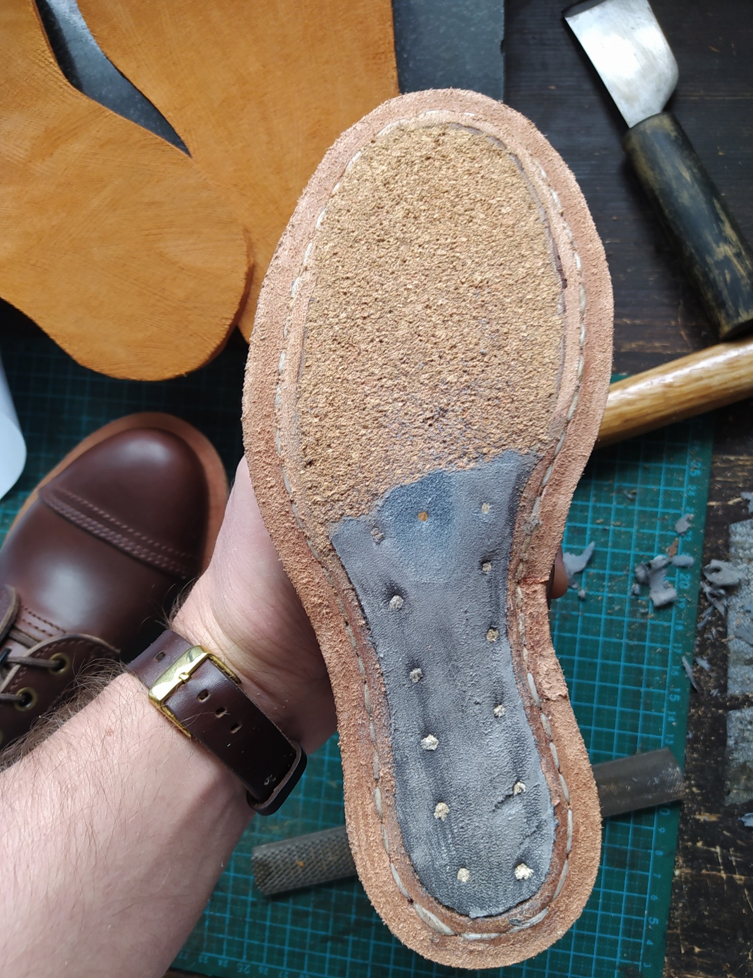 Ремонт обуви. Внутренняя латка на замшевой обуви.