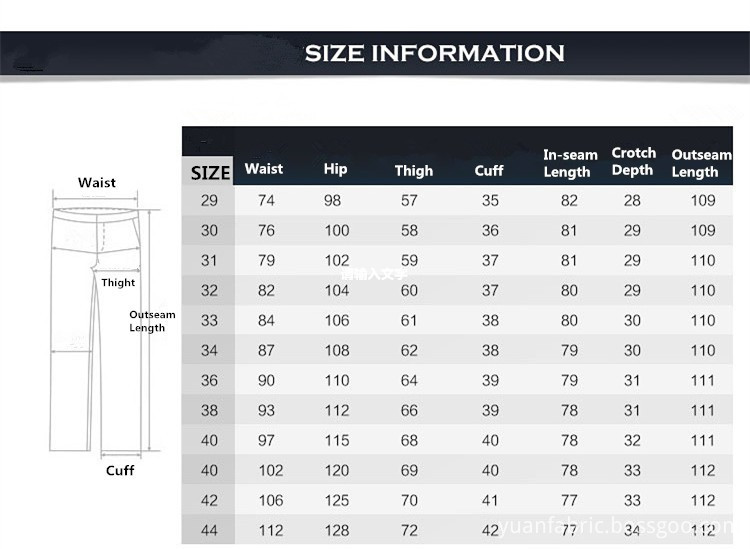 Обратите внимание на состав ткани и стрейч-процент, чтобы выбрать оптимальную посадку для вашего тела