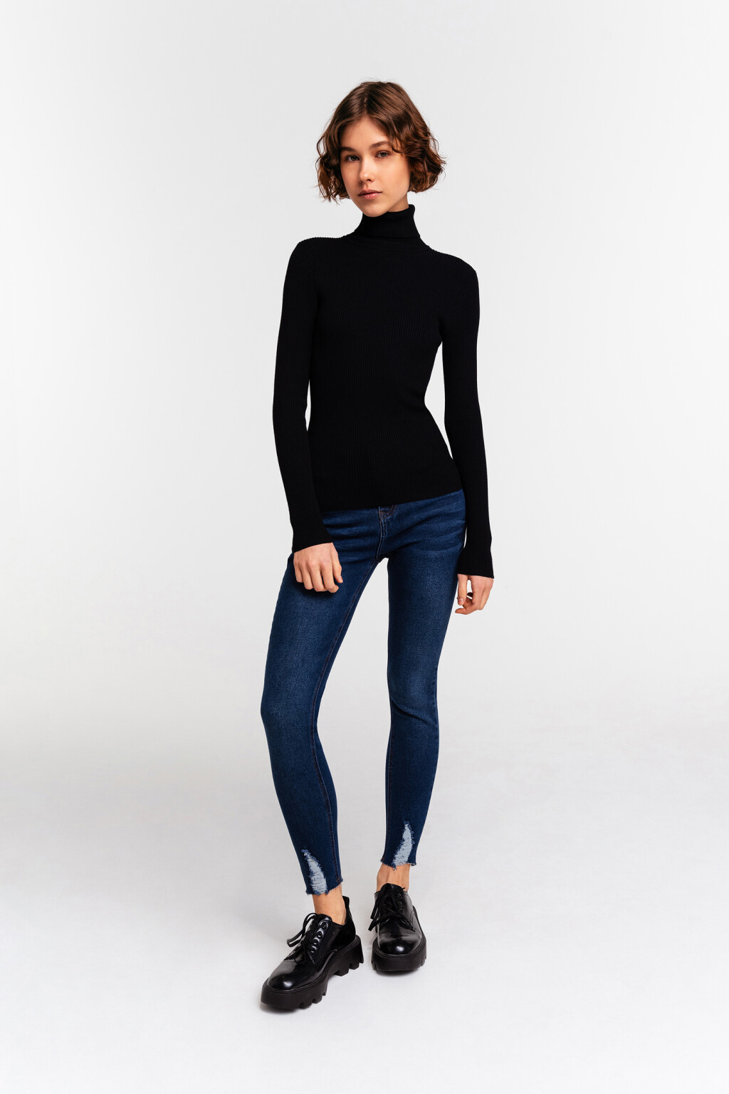 Выбирайте водолазку и футболку одного оттенка для уравновешивания цветовой гаммы в образе.