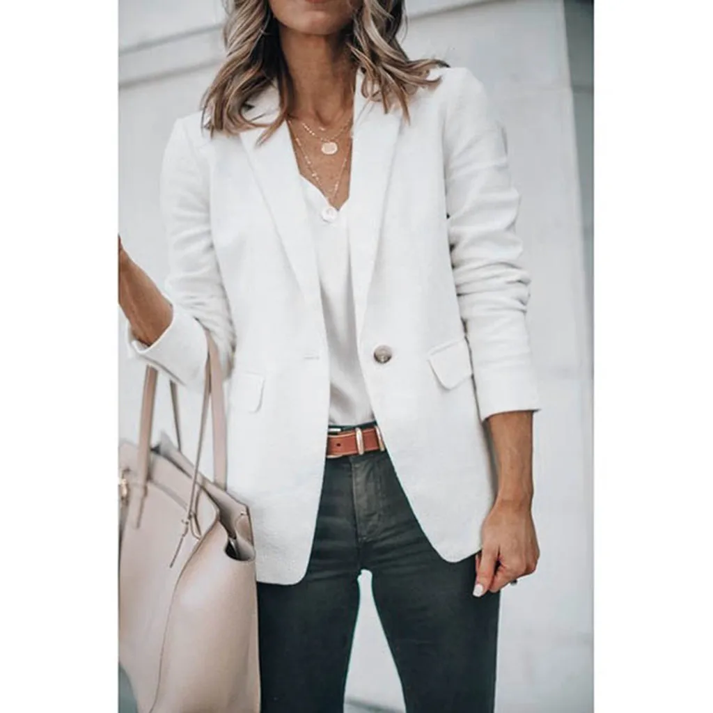 Хотите создать элегантный и стильный образ? Объедините белые джинсы с черным пиджаком и подчеркните свою уверенность и хороший вкус.