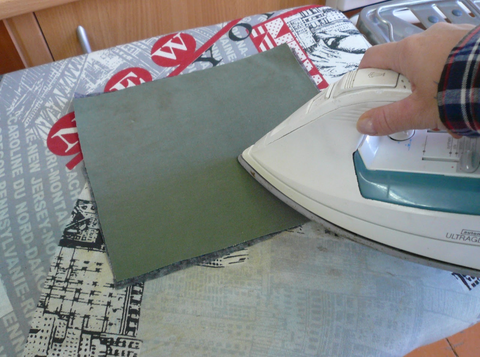 Прижимайте дублерин к ткани ровным движением, избегая образования пузырей или складок.