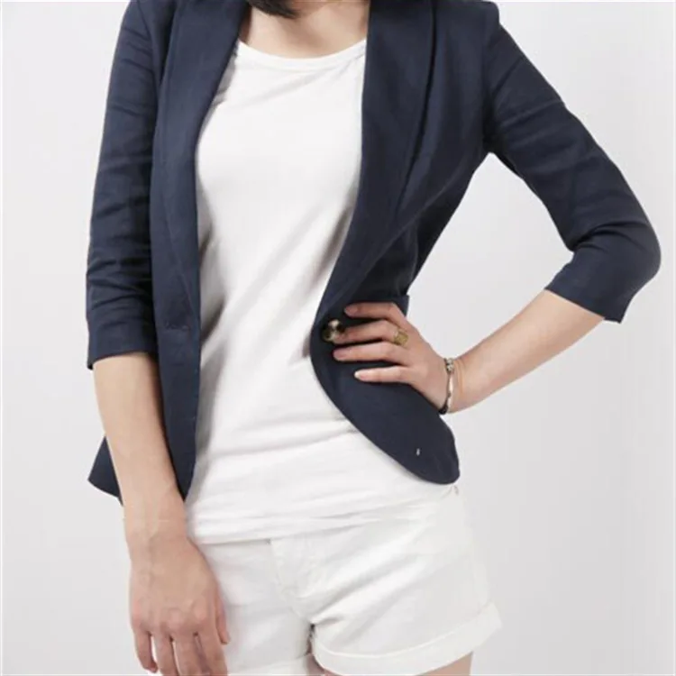 Сочетайте пиджак без лацканов с узкими брюками или юбкой для более женственного образа.