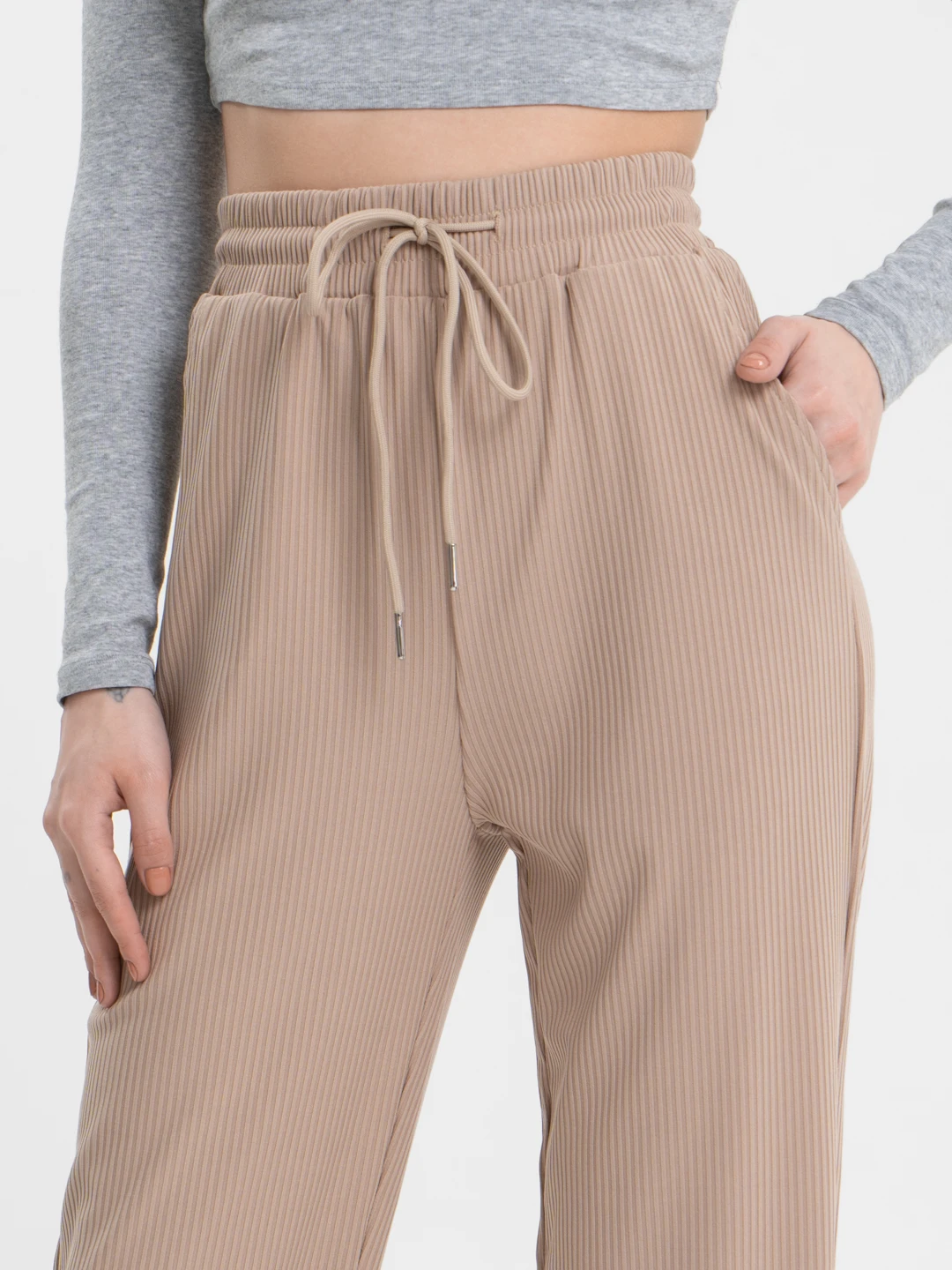 Сочетайте штаны в рубчик с различными верхами для создания разнообразных образов.