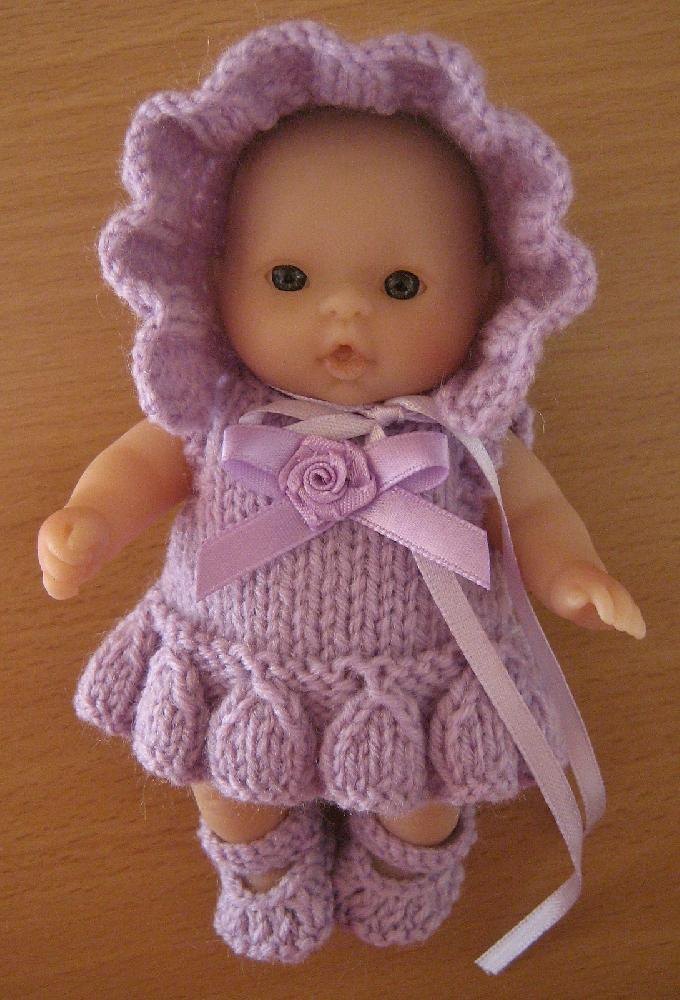Подбирайте аксессуары в тон и стиль к вязаной одежде куклы: