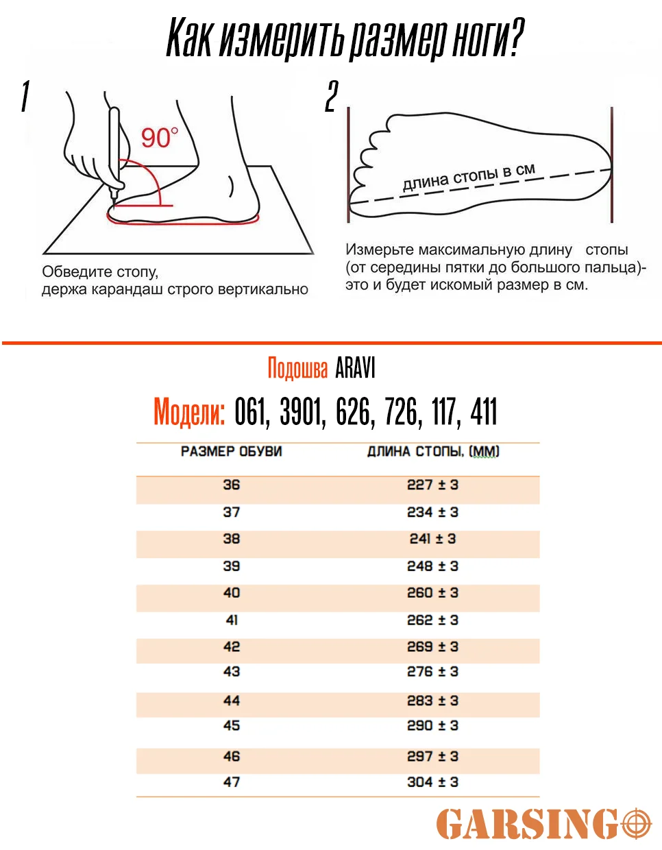 Измерьте длину стопы перед походом в магазин - это позволит выбрать соответствующий размер.