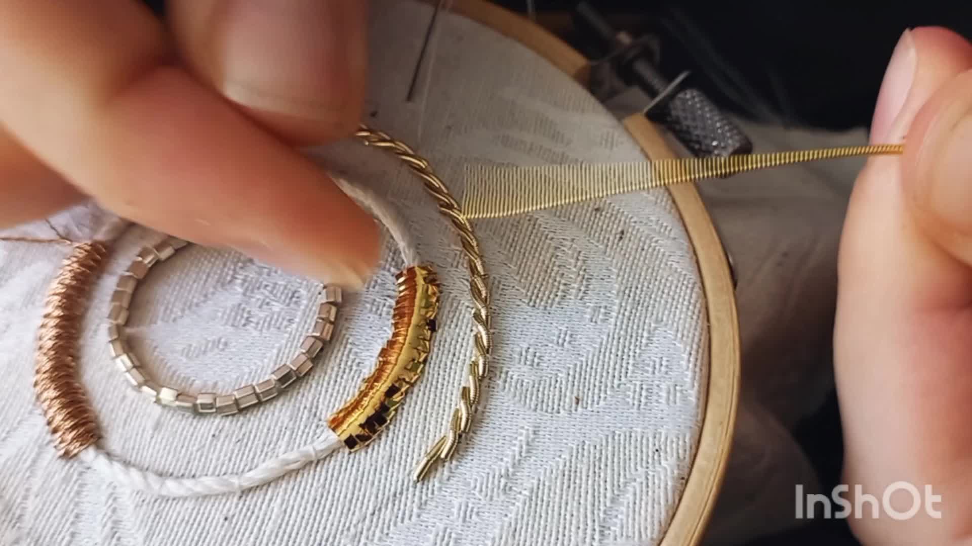 Мастер-класс вышивка канителью/ как пришить жесткую канитель/ пришиваем канитель/beadwork