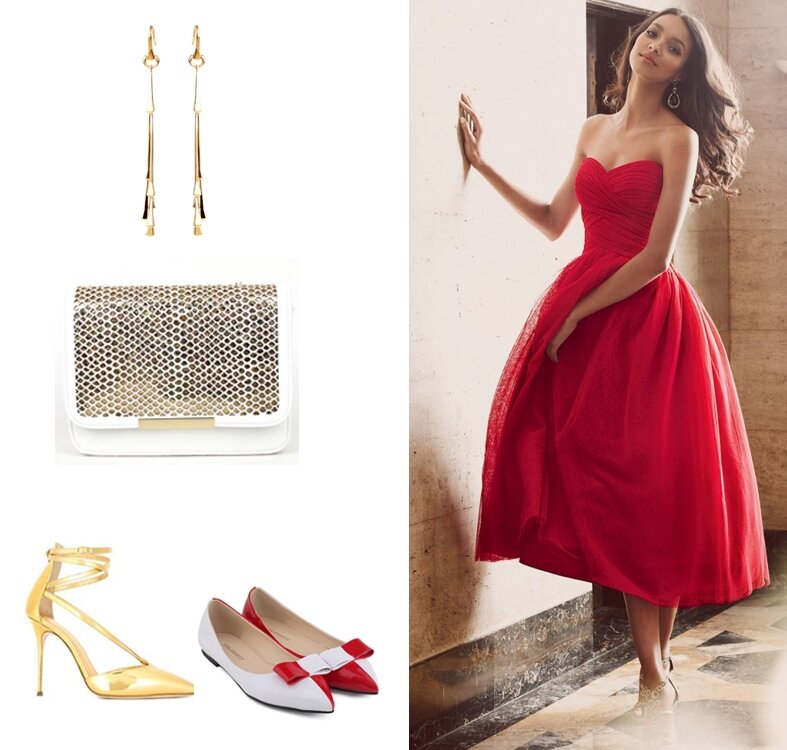 Главные правила стиля: красное платье и золотые туфли