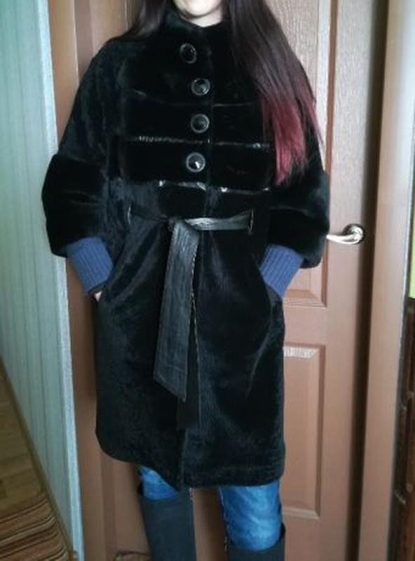 Модная шуба из мутона с оригинальными вставками из кожи для настоящих ценителей стиля