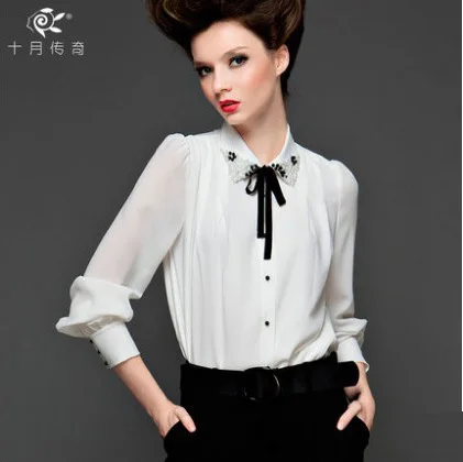Комбинируйте белую кофту с бантом с классическими брюками для офисного стиля.