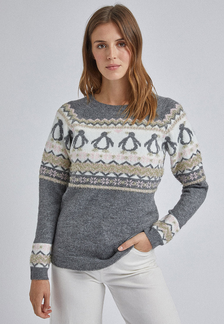 Играйте с контрастами: серый свитер со звездами прекрасно сочетается с яркими акцентами или пастельными оттенками.