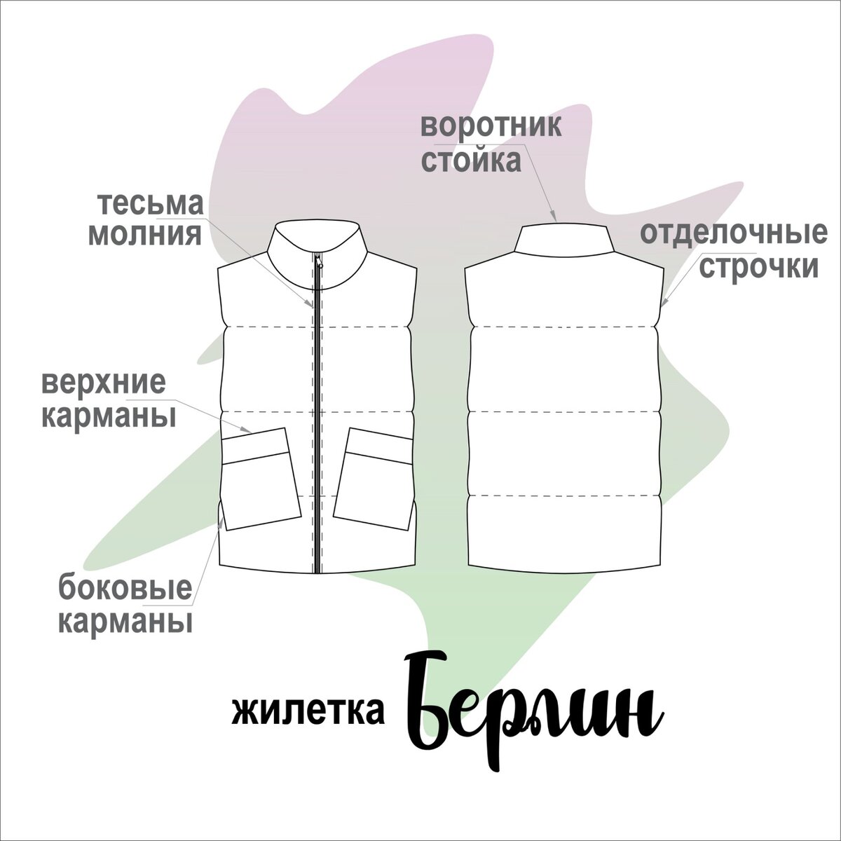 При сборке жилетки следите за равномерным распределением складок и строчек для идеальной посадки.