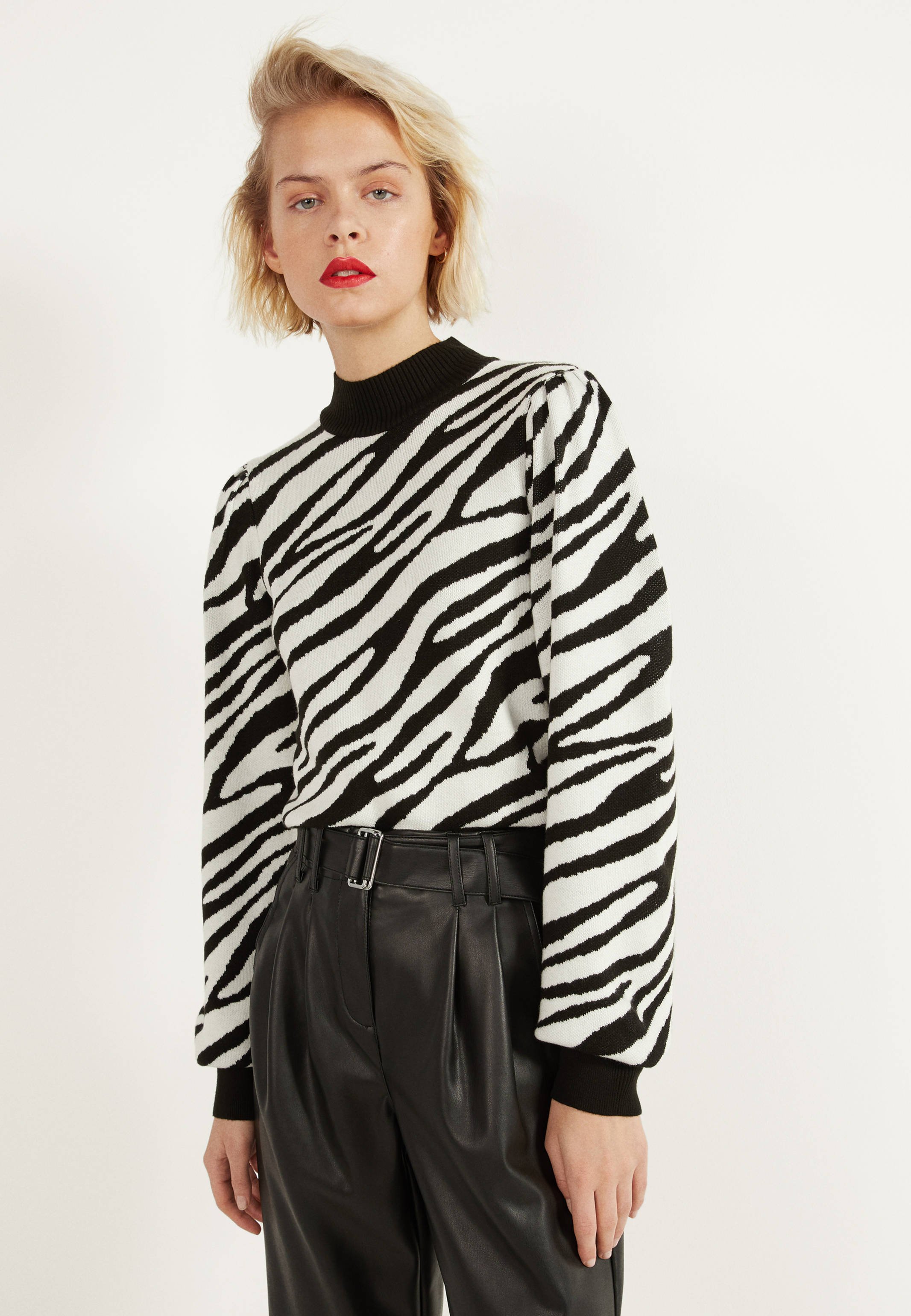 Выбирайте свитера с умеренным зебрином принтом, чтобы не перегрузить образ.