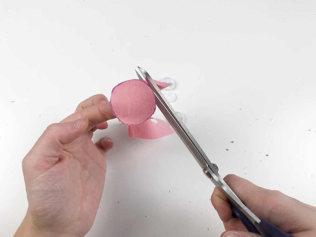 Прижимайте ткань к пуговице тщательно, чтобы избежать образования складок и скрыть края материала.
